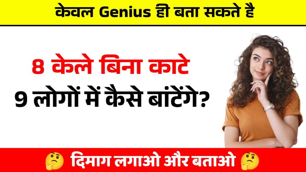 Hindi Paheli – यह एक ऐसी हिंदी पहेली है जो सुनने में जितनी साधारण लगती है, दिमाग घुमाने में उतनी ही कठिन साबित होती है। सवाल है—8 केले बिना काटे 9 लोगों में कैसे बांटे जाएँ? अधिकतर लोग इसे सुनते ही गणित लगाने लगते हैं, कोई कहता है कि यह संभव ही नहीं है, तो कोई केले काटने की शर्त भूल जाता है। यही वजह है कि 90% लोग इस पहेली में फेल हो जाते हैं। असल में यह पहेली हमारे लॉजिकल थिंकिंग और आउट-ऑफ-द-बॉक्स सोच को परखने के लिए बनाई गई है। इसमें न तो केले काटने की अनुमति है और न ही किसी को बिना हिस्सा दिए छोड़ना है। ऐसे सवाल दिमाग को रोजमर्रा की सीधी सोच से बाहर निकालकर नई दिशा में सोचने के लिए मजबूर करते हैं, और यही इन पहेलियों की सबसे बड़ी खासियत होती है।